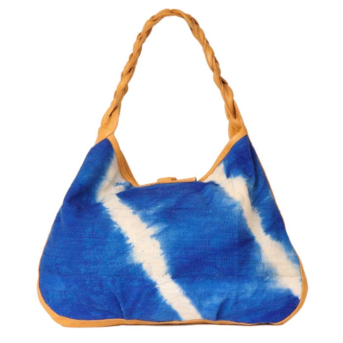 Made from colorful African Mali cloth, this bag gives off a bohemian relaxed feel. Made with yummy leather, it comes in the four options of chocolate, black, tan, and caramel leather. The African Hobo is made in bright orange, blue, and purple Mali cloth making a statement with its bright urban aura. Made in Los Angeles