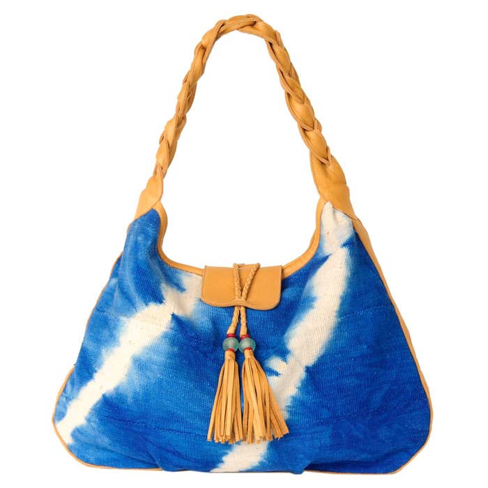 Made from colorful African Mali cloth, this bag gives off a bohemian relaxed feel. Made with yummy leather, it comes in the four options of chocolate, black, tan, and caramel leather. The African Hobo is made in bright orange, blue, and purple Mali cloth making a statement with its bright urban aura. Made in Los Angeles