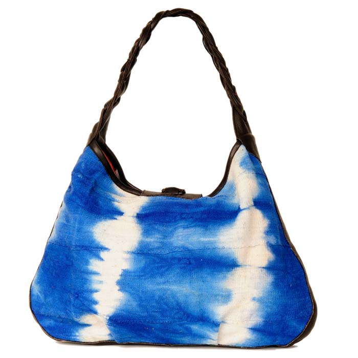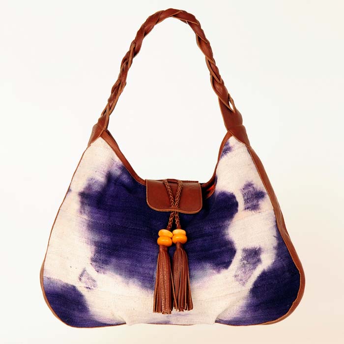 Made from colorful African Mali cloth, this bag gives off a bohemian relaxed feel. Made with yummy leather, it comes in the four options of chocolate, black, tan, and caramel leather. The African Hobo is made in bright orange, blue, and purple Mali cloth making a statement with its bright urban aura. Made in Los Angeles