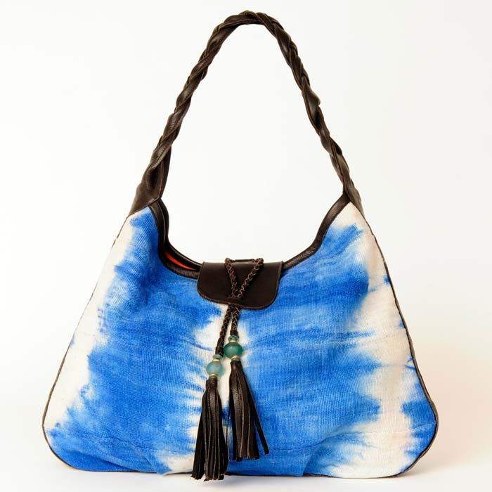 Made from colorful African Mali cloth, this bag gives off a bohemian relaxed feel. Made with yummy leather, it comes in the four options of chocolate, black, tan, and caramel leather. The African Hobo is made in bright orange, blue, and purple Mali cloth making a statement with its bright urban aura. Made in Los Angeles