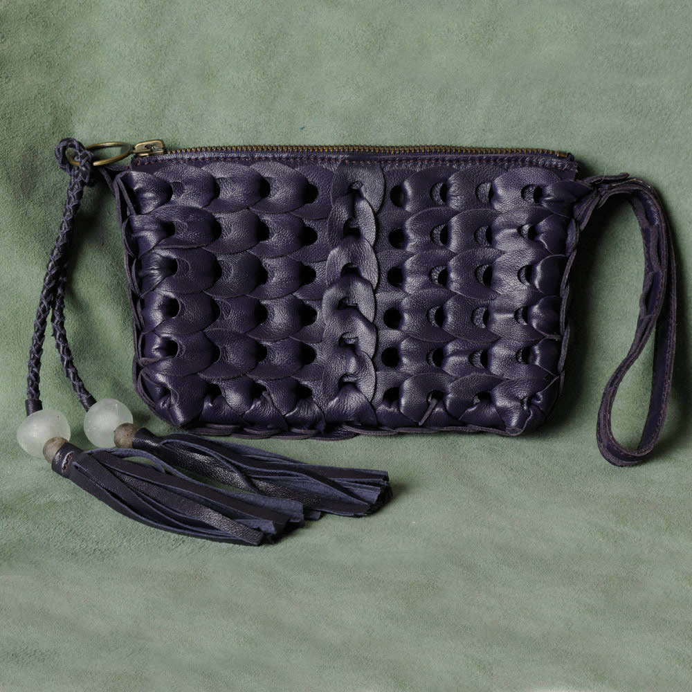 Carry this sumptuous handwoven Peruvian-inspired clutch made of the softest lambskin and accented with exotic toggle, beads and tassel.