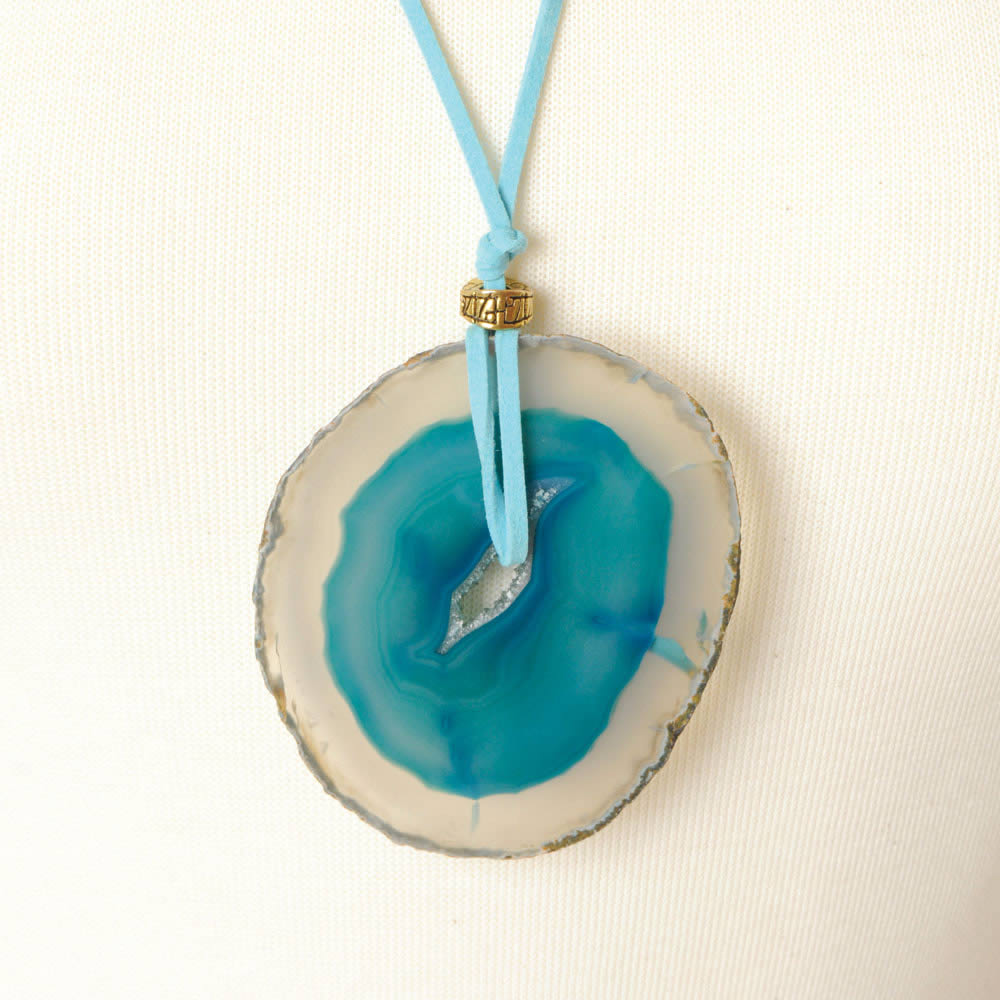 Agate known to be a symbol of truth and one of the oldest gemstones is featured in this rustic necklace design.