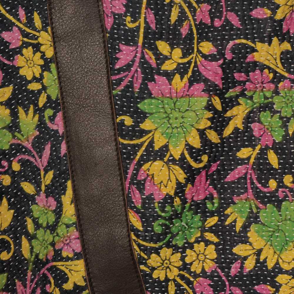 412 Diaper Tote with Chocolate Leather & Green Kantha 2