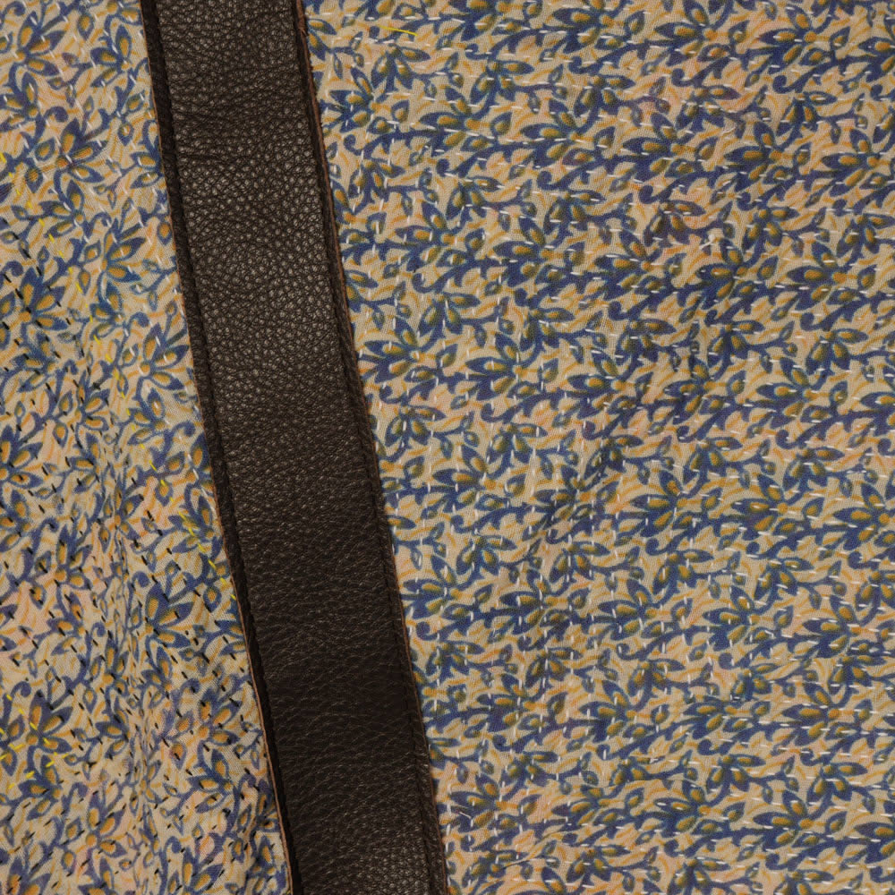 412 Diaper Tote with Chocolate Leather & Blue Kantha 4