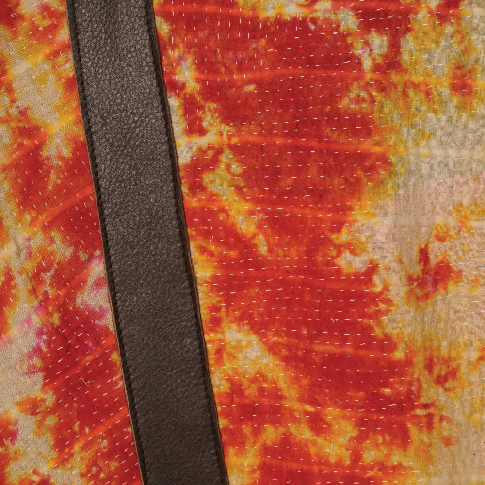 412 Diaper Tote with Tan Leather & Orange Kantha 4