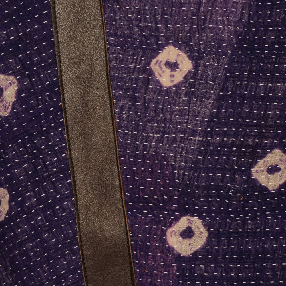 412 Diaper Tote with Chocolate Leather & Purple Kantha 4