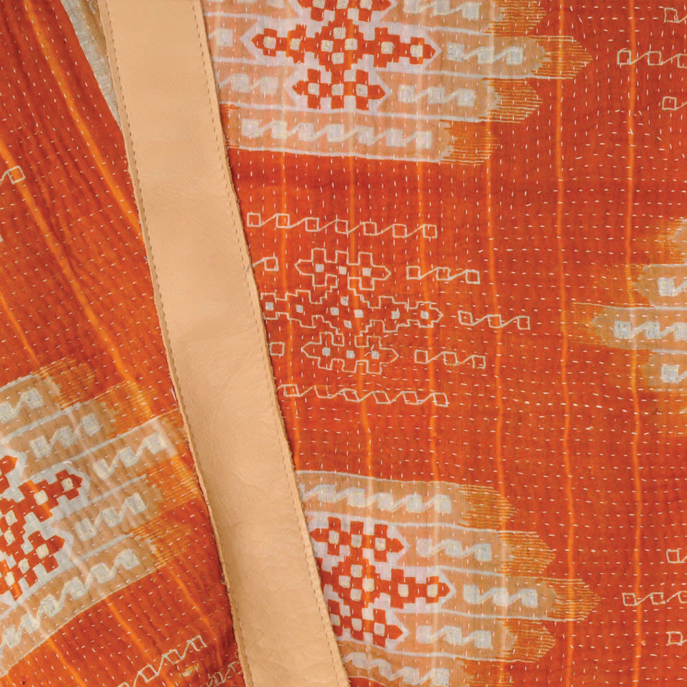 412 Diaper Tote with Tan Leather & Orange Kantha 4
