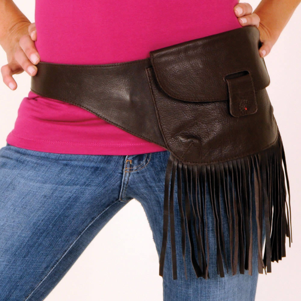 Shake those hips! Belted rich cowhide purse with sassy fringe. Antique brass double D-ring closure.