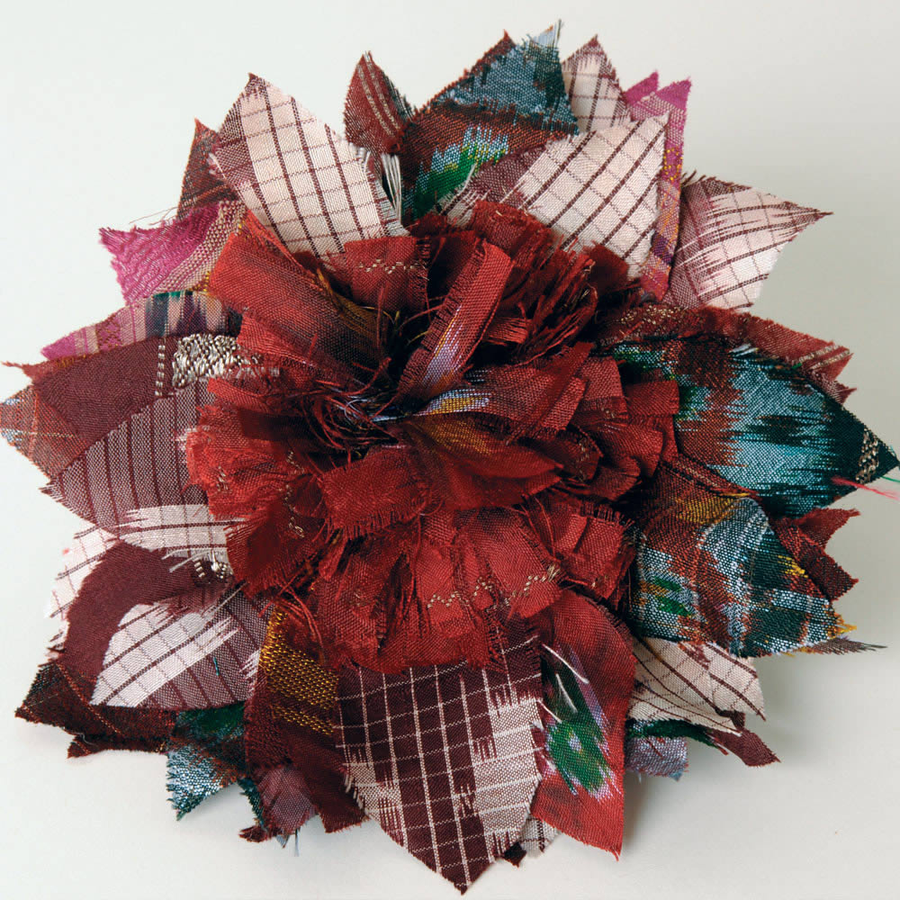 Repurposed silk saris and scarfs are used to make these vibrant and fun embellishments