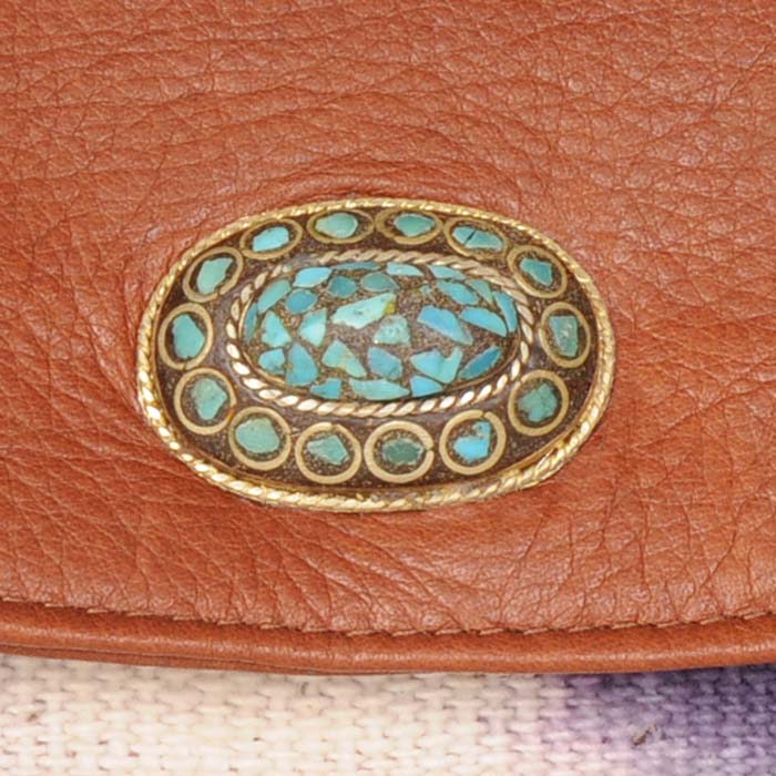 Made from colorful African Mali cloth, this bag gives off a bohemian relaxed feel. Made with yummy leather, it comes in the four options of chocolate, black, tan, and caramel leather. The Gabby Fringe Duffle is made in bright orange, blue, and purple Mali cloth making a statement with its bright urban aura. One large front flap pocket, two side zip pockets and one main compartment.  Made in Los Angeles