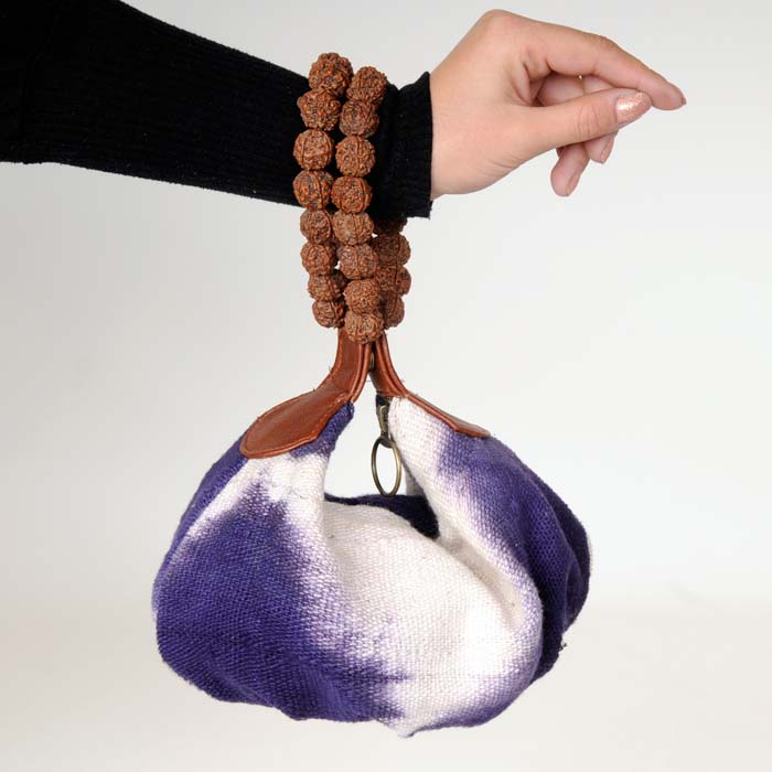 Made from colorful African Mali cloth, this bag gives off a bohemian relaxed feel. Made with yummy leather, it comes in the four options of chocolate, black, tan, and caramel leather. The Bracelet Bag is made in bright orange, blue, and purple Mali cloth making a statement with its bright urban aura.
