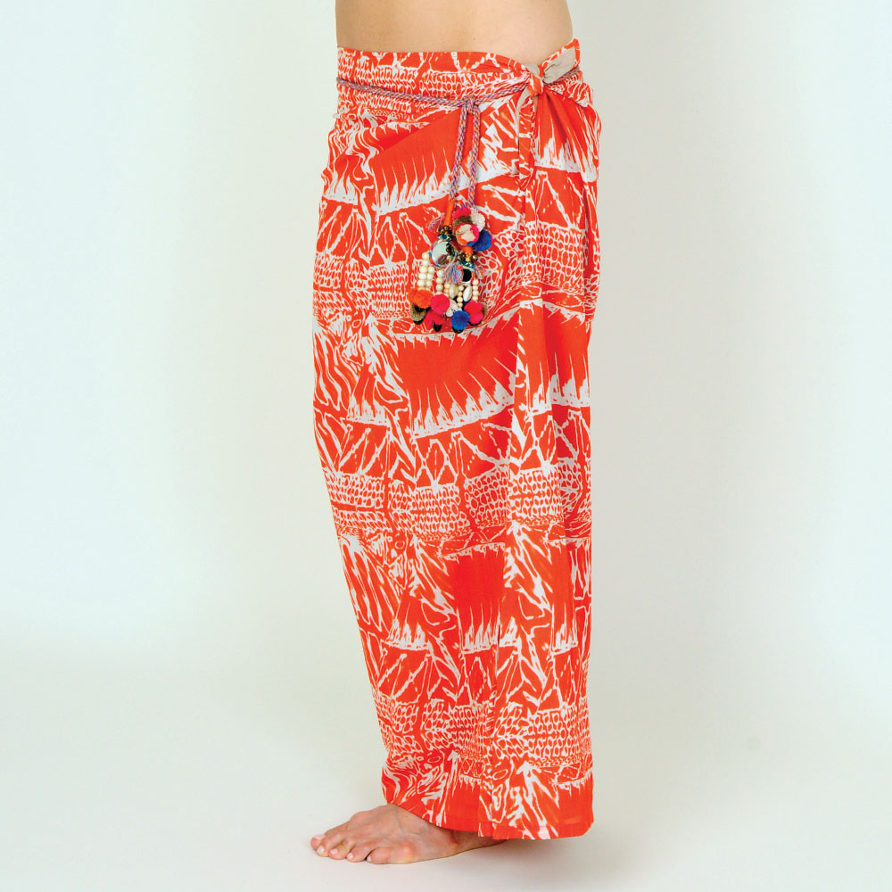 There's something "so right" about this lightweight cotton tribal-printed sarong. By sewing up the strategic portion of the side opening, you can now wear the sarong beyond the pool and beach. Perfect for lunch or cocktails with a tank top.