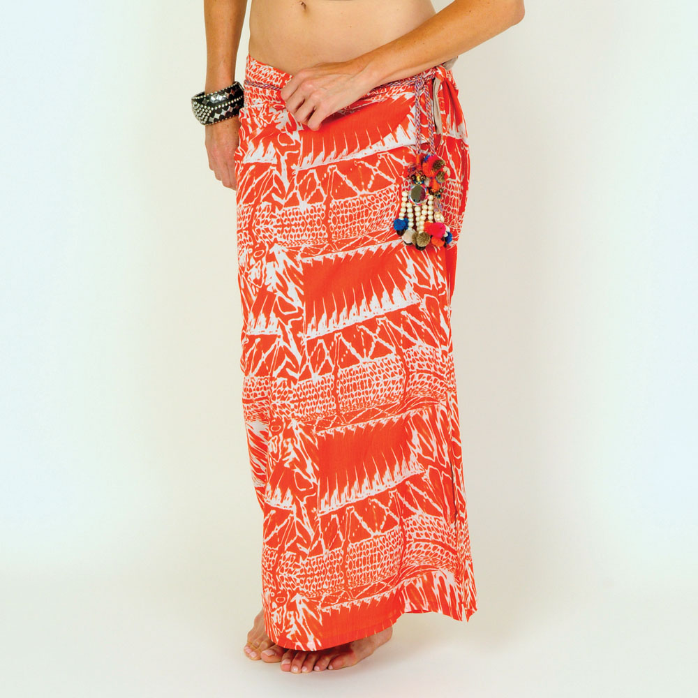 There's something "so right" about this lightweight cotton tribal-printed sarong. By sewing up the strategic portion of the side opening, you can now wear the sarong beyond the pool and beach. Perfect for lunch or cocktails with a tank top.
