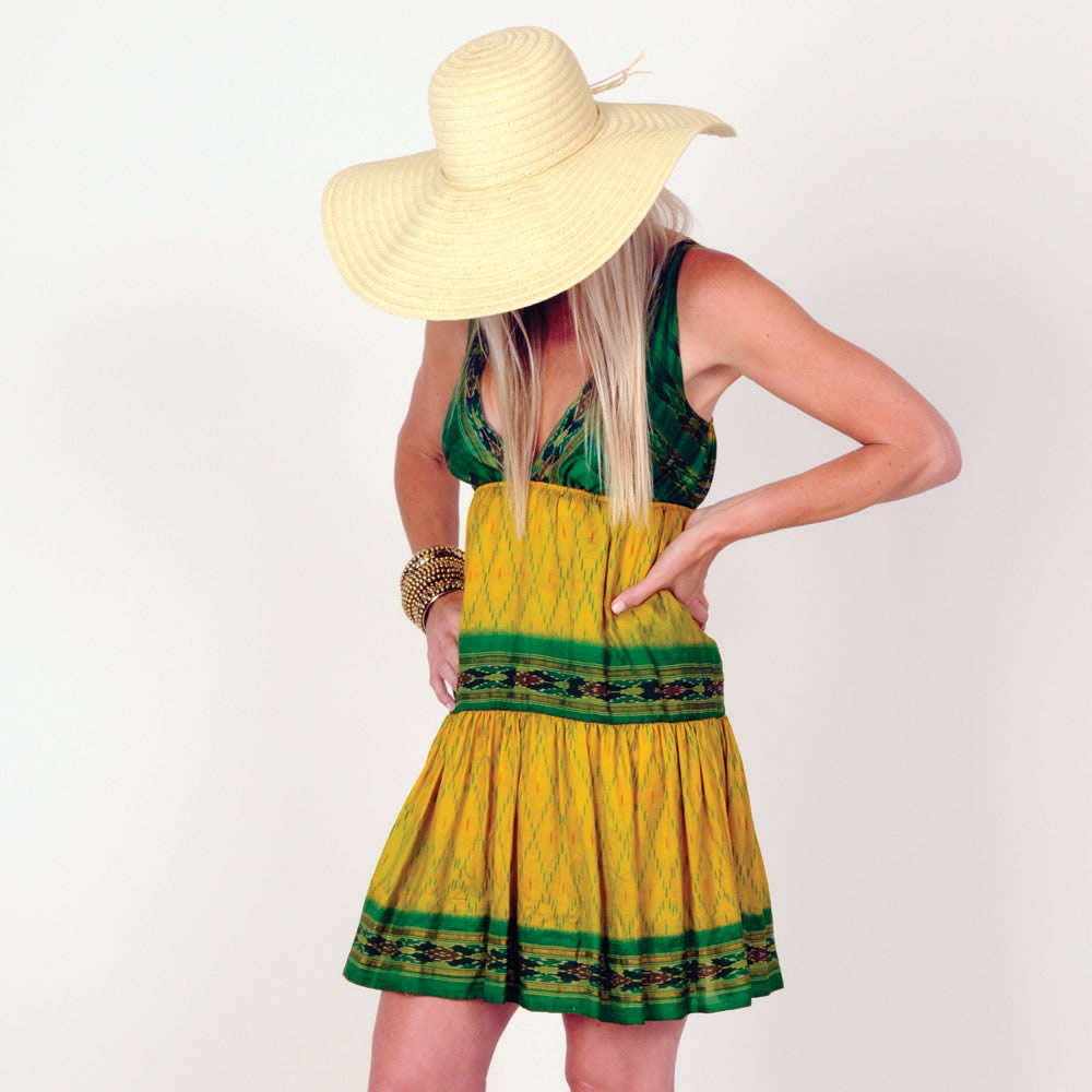Light and airy bohemian dress made of one-of-a-kind antique silk sari.