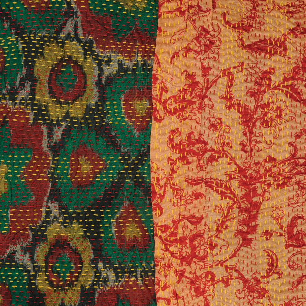 Hand stitched kantha shawls made of two layers of silk embroidered together